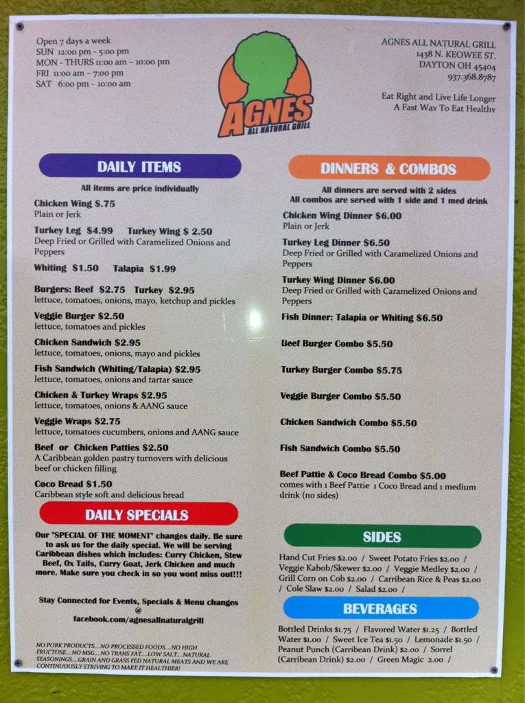 Agnes All Natural Grill Delivery Menu Order Online 2700 Miamisburg Centerville Rd Dayton Grubhub