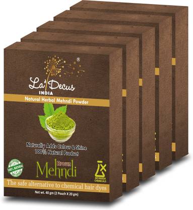 La Decus Natural Herbal Organic Henna Mehndi Brown Powder For Hair With Medicinal Herbs Pack Of 5 Each 40 Gm Price In India Buy La Decus Natural Herbal Organic Henna Mehndi Brown Powder