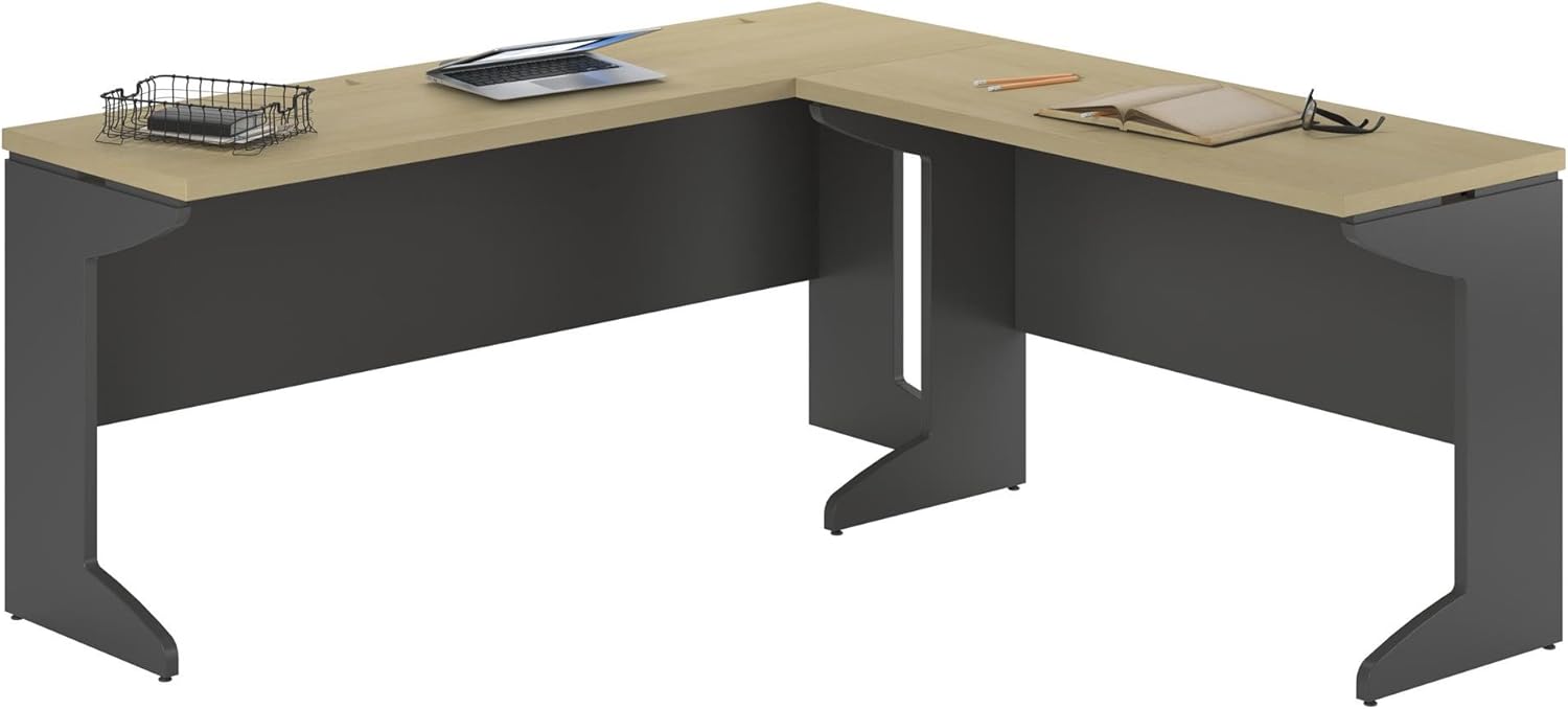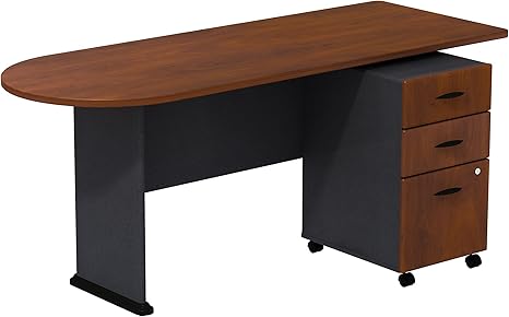 Amazon Com Bush Business Furniture Series A Hansen Cherry Galaxy 72w Peninsula Desk With 3 Drawer Mobile Pedestal Furniture Decor