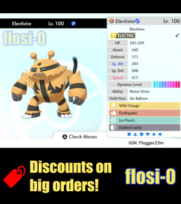 Electivire likes to play the game of If you cant KO me I will KO you and If I outspeed you somehow its over Electivire is a pokemon with moderate bulk.