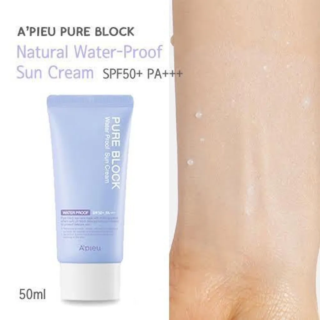 Amazon Com A Pieu Pure Block Natural Waterproof Sun Cream Spf50 Pa 50ml Waterproof Light Korean Sunscreen For Face Beauty